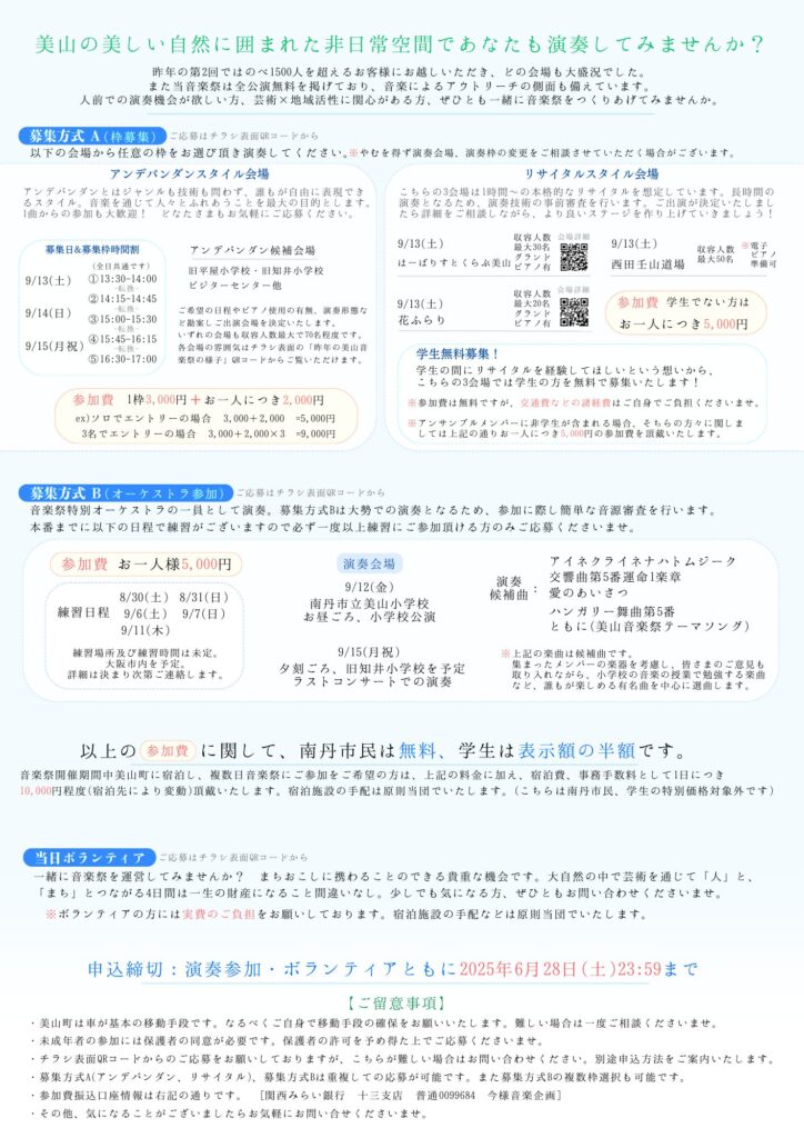第3回美山音楽祭 募集開始! 2025 5/12 event 第3回美山音楽祭 美山音楽祭 2025年5月12日 第3回美山音楽祭の出演者&ボランティア募集が開始しました。詳しくは、こちらのページをご覧ください。 event 第3回美山音楽祭 美山音楽祭 URLをコピーしました! 第2回美山音楽祭各会場報告:9/16 旧知井小学校 第3回美山音楽祭へのご支援のお願い(広告ご支援および個人サポーター制度) 関連記事 8/28 ホルンとピアノの演奏会 2025年7月22日 8/17 ヴァイオリン&サントゥールライブ 2025年7月22日 [報告]7/6『世界を旅する音楽会』in 綾部 2025年7月22日 第3回美山音楽祭へのご支援のお願い(広告ご支援および個人サポーター制度) 2025年6月27日 第2回美山音楽祭各会場報告:9/16 旧知井小学校 2024年11月1日 第2回美山音楽祭各会場報告:9/15 美山かやぶき美術館 2024年11月1日 第2回美山音楽祭各会場報告:9/14美山珈琲 2024年11月1日 第2回美山音楽祭各会場報告:9/14はーばりすとくらぶ美山 2024年11月1日