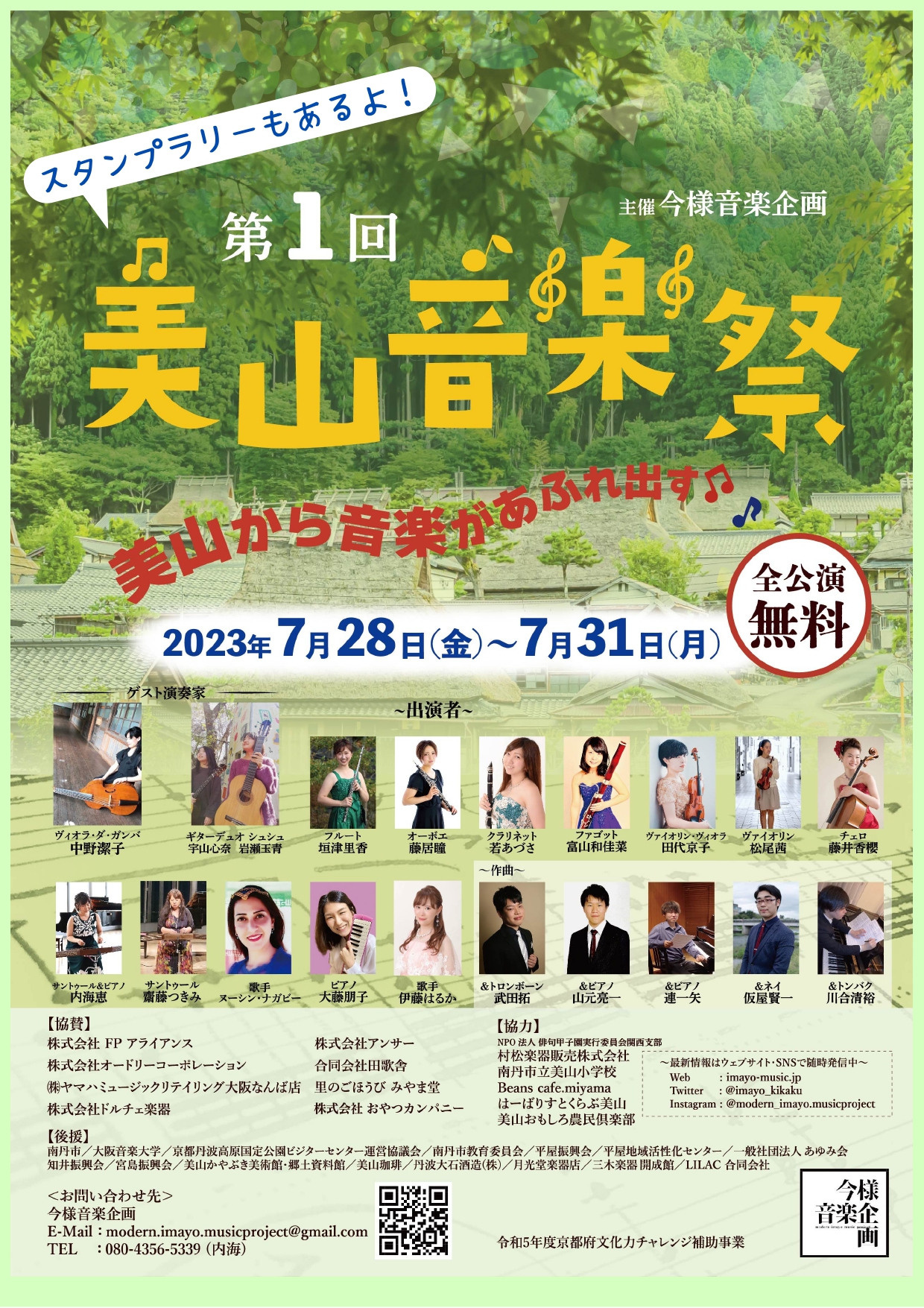 美山音楽祭の特設ページをオープンしました! 2023 7/22 event 美山音楽祭 2023年7月22日 あわせて読みたい ページが見つかりませんでした – 今様音楽企画 こちらのリンクからご覧ください! event 美山音楽祭 美山音楽祭 URLをコピーしました! 美山音楽祭 第4日(7/31) 2023.11.3(金・祝) 第7回川合元気まつり 出演! 関連記事 8/28 ホルンとピアノの演奏会 2025年7月22日 8/17 ヴァイオリン&サントゥールライブ 2025年7月22日 [報告]7/6『世界を旅する音楽会』in 綾部 2025年7月22日 第3回美山音楽祭へのご支援のお願い(広告ご支援および個人サポーター制度) 2025年6月27日 第3回美山音楽祭 募集開始! 2025年5月12日 第2回美山音楽祭各会場報告:9/16 旧知井小学校 2024年11月1日 第2回美山音楽祭各会場報告:9/15 美山かやぶき美術館 2024年11月1日 第2回美山音楽祭各会場報告:9/14美山珈琲 2024年11月1日