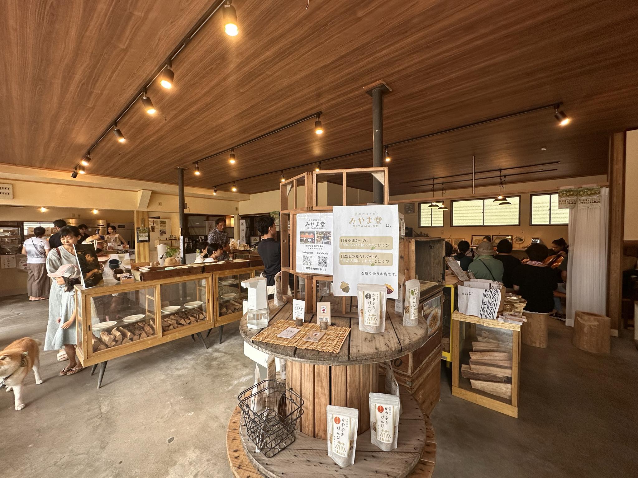 みやま堂さんでは美山の素材を使った「京都美山かやぶきけんぴ」や、ご当地素材を使った手作りジャム、マグカップなどお土産にぴったりな商品が並んでおり、店内では甘い炭焼きのやきいもがいただけます!