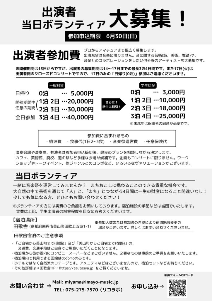 第2回美山音楽祭は、2024年9月13日(金)〜17日(火)に開催。