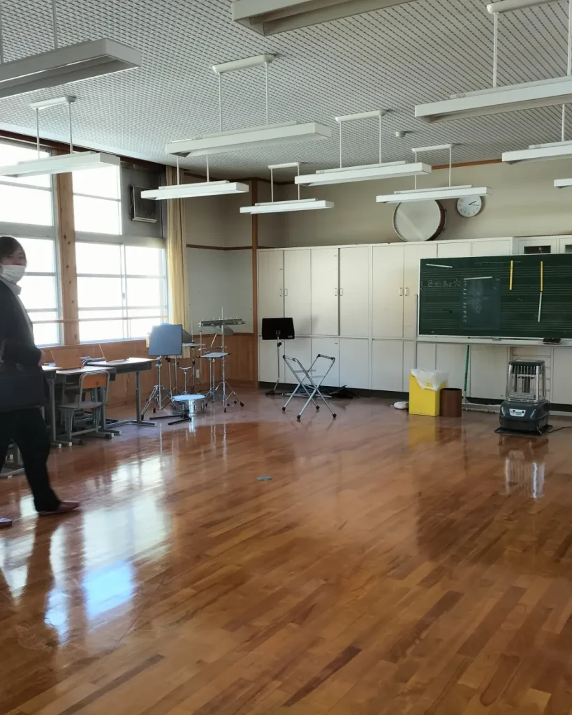 演奏場所は、廃校になった小学校や、地元のカフェ、かやぶき美術館などです。