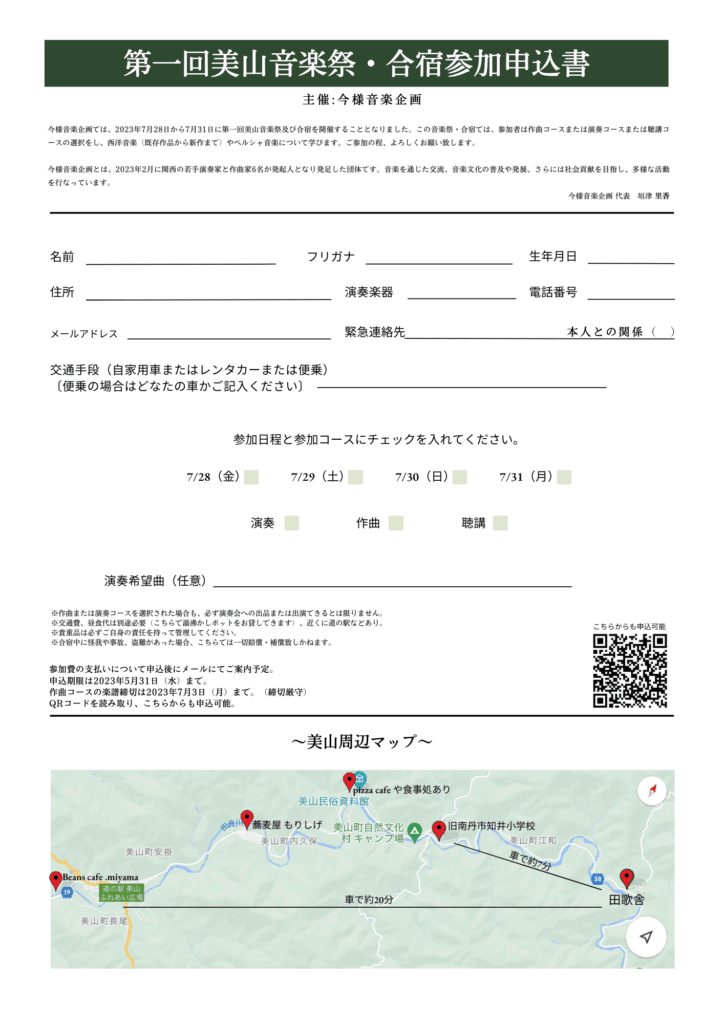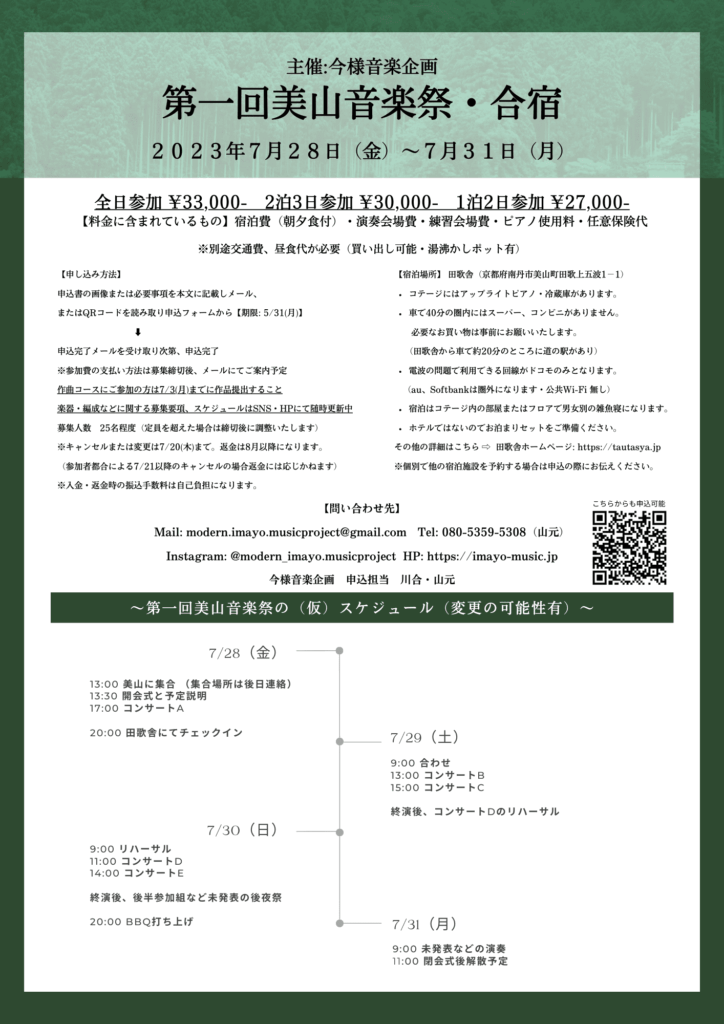 7/28(金)〜7/31(月)の期間、京都北部の美山にて音楽祭を開催する運びとなりました!