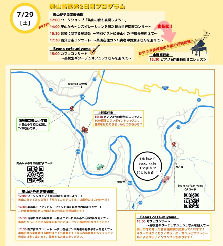 美山音楽祭ページはこちら 1.美山かやぶき美術館 12:00〜ワークショップ「美山の音を表現しよう!」自然に囲まれ開放的な「かやぶきの家」という素敵な環境を生かした《ワークショップ》を開催します。美山の”音”を感じ取り、みなさんの豊かなアイデアを... -